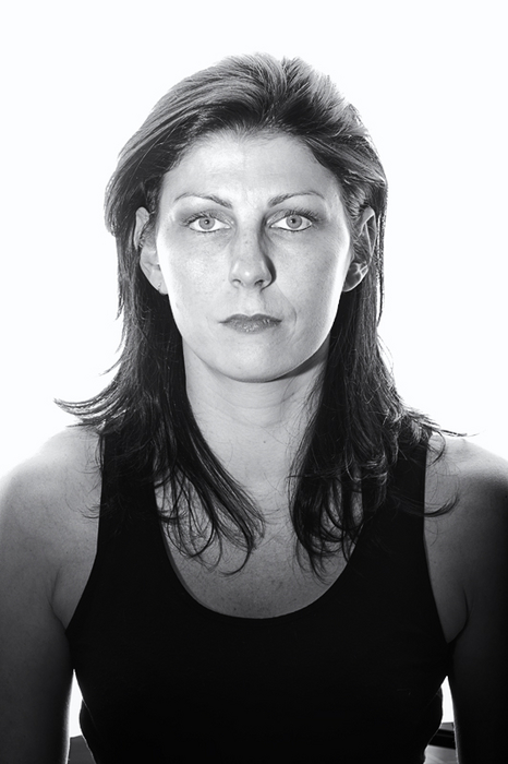 Ici, le sujet est placé contre une boîte à lumière octogonale et éclairé devant par un flash équipé d'un snoot ( long cône avec nid d'abeille) qui concentre la lumière sur le visage.