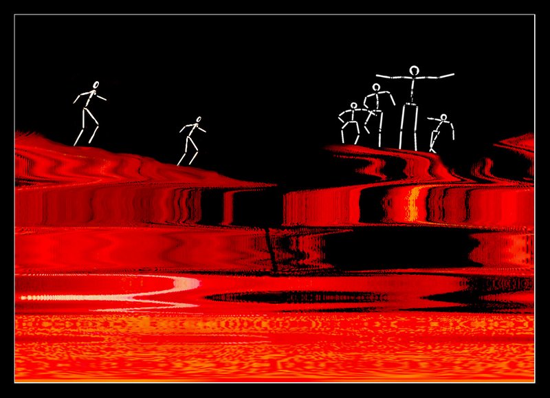 Je sais pour les pantins. Tu avais déjà expliqué ça. Tu les as assemblés avec une manip photoshopienne rouge ?