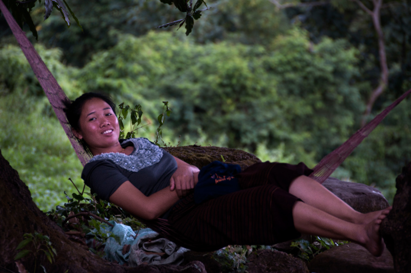 une petite marchande qui attendait le client tout en haut du temple VAT PHU au sud du Laos