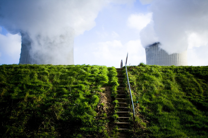 Là c'est une photo que j'ai prise pendant qu'on tournait notre reportage sur la centrale nucléaire de saint laurent des eaux. Et puis j'ai vu ce talus et j'ai voulu mettre en opposition verdure et les cheminées. Après, j'aurais du me positionner plus en hauteur (peut être sur le toit de la voiture) comme ca j'aurai eu un meilleur angle pour les cheminées. Je vais essayer en tout cas de faire ressortir mieux la vapeur et les cheminées.
