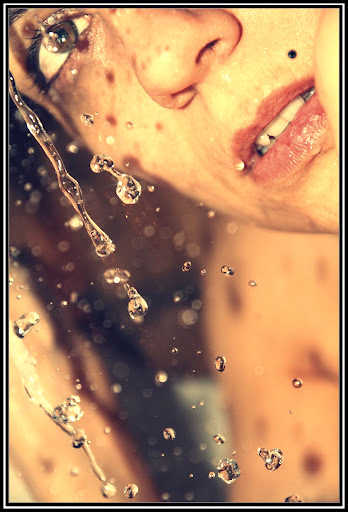le cadrage est très personnel et particulier laissant la part belle aux gouttes d'eau et renvoyant au coin cet œil tourmenté. Je suis évidemment gêné par ce qui cache le coin de la bouche.