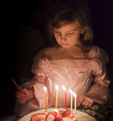 Jolie lumière, jolie couleurs pour cette belle princesse qui soit me semble triste, soit est très concentrée sur son vœu avant de souffler ses bougies