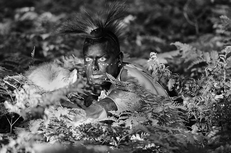 Vrai indien Mohawk en habit traditionnel qui s'est très gentiment prêté à une séance au petit matin lorsque la lumière était top en sous-bois.
