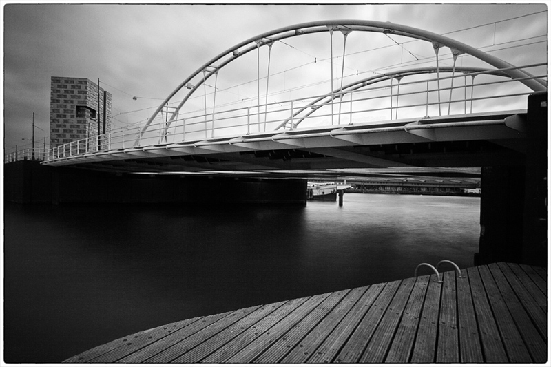 mais ce qui me titille c'est la masse noire (au milieu à gauche) sous le pont où l'eau se confond avec le muret (peut-être à éclaircir légèrement). Mon regard vient buter dessus.