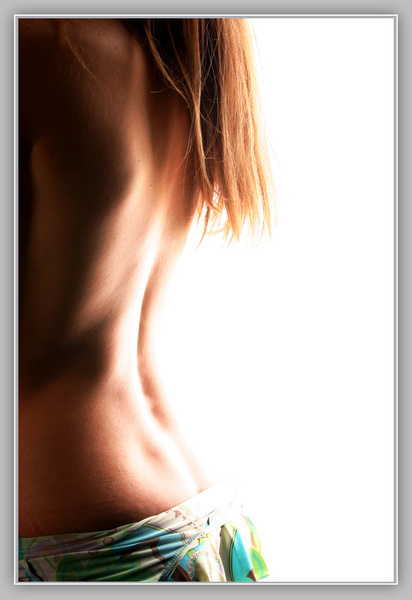 je trouve la lumière très violente sur ce joli modèle... l'habit rabattu n'est pas très esthétique et on voit la marque des vêtements sur la peau.