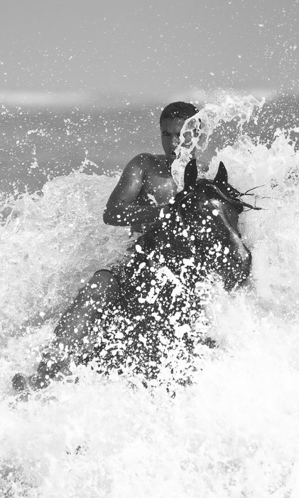 j'aime beaucoup aussi cette photo, le cadrage, la vague et le couple homme cheval
