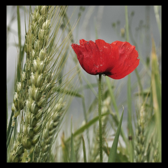 Jolies couleurs douces, le coquelicot est un peu trop centré et les épis de blés sont trop les uns sur les autres pour faire un "couple" ...