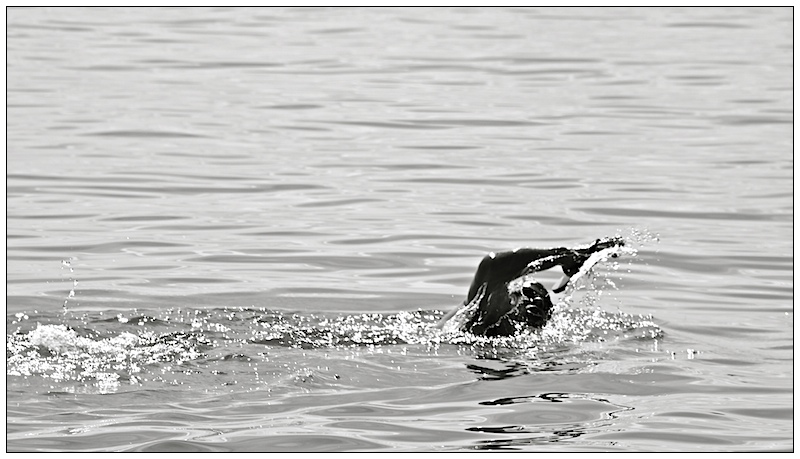 j'ai cru un moment voir la queue d'un dauphin ou d'une orque avant de comprendre que c'était un nageur