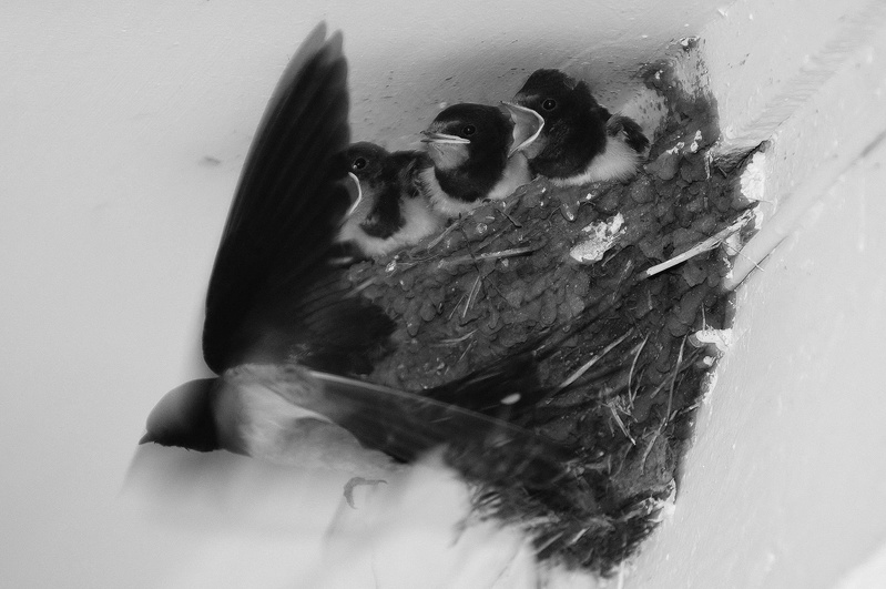 Sympa ce nid d'hirondelles Un peu moins d'espace à droite et plus à gauche pour que la maman puisse mieux dégager