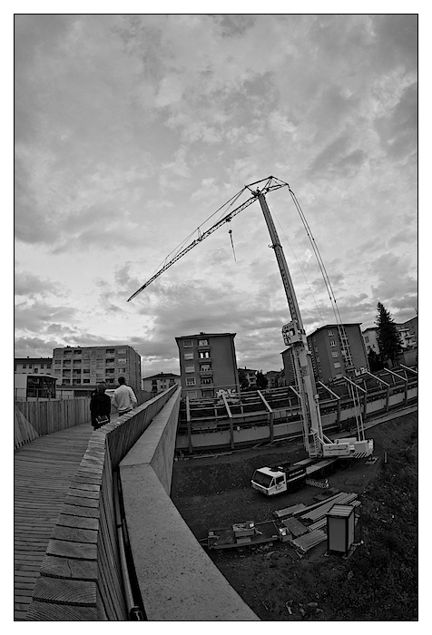 Là, y'a les personnages, mais le cadrage qui donne toute la place à la grue me plait moins. J'aimais vraiment l'utilisation des lignes dans ta 1ère compo.