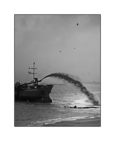 J'aime bien le cadre que tu as choisi. Le ciel est un peu trop gris, dommage. "Rejet" très bien rendu, vol des mouettes impeccable.
