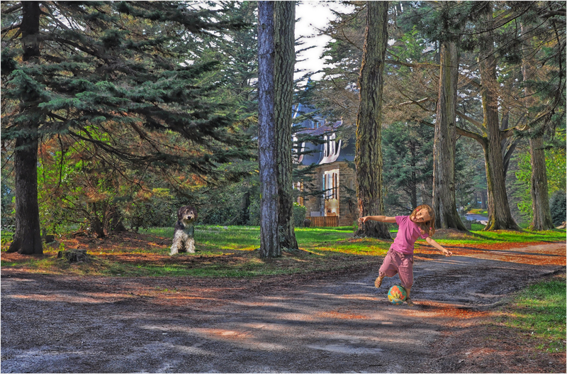 Effectivemet, très esprit bibliothèque verte Le rendu me semble assez naturel pour l'environnement. Le chien fait assez "posé là". Une attitude plus dynamique le ferait moins ressentir. Ce n'est que mon avis