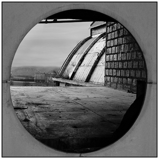 Excellent noir et blanc. J'adore cette photo pleine de formes géométriques s'ouvrant vers un paysage lointain. Superposition béton/nature, puis neuf/ancien. Beaucoup de choses ici ! Tu as vraiment un "oeil" d'expert. Bravo