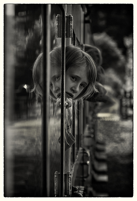 Un portait pour le moins atypique!! Bien avec le reflet! bien fait ça! le NB est un bon choix selon moi aussi!