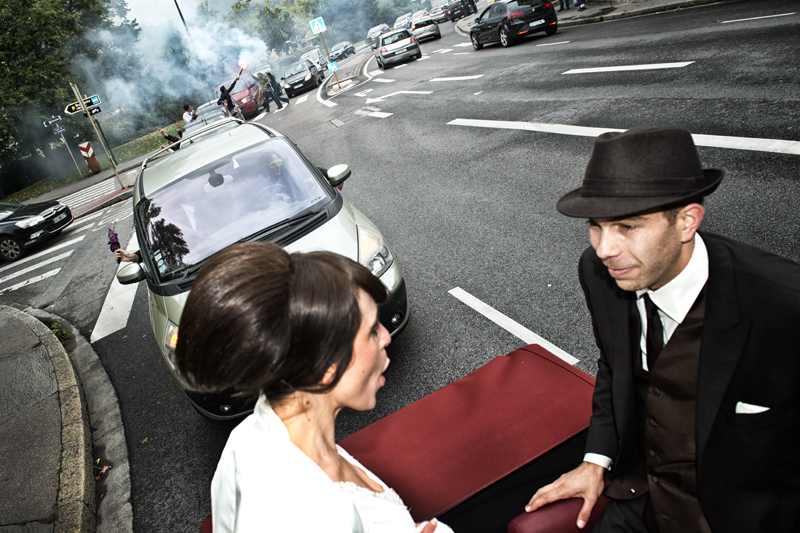 une photo de mariage très original pour le coup! j'aime ce décalage!! la compo est dynamique de par son cadrage déroutant! juste dommage la joue creuse de la mariée...