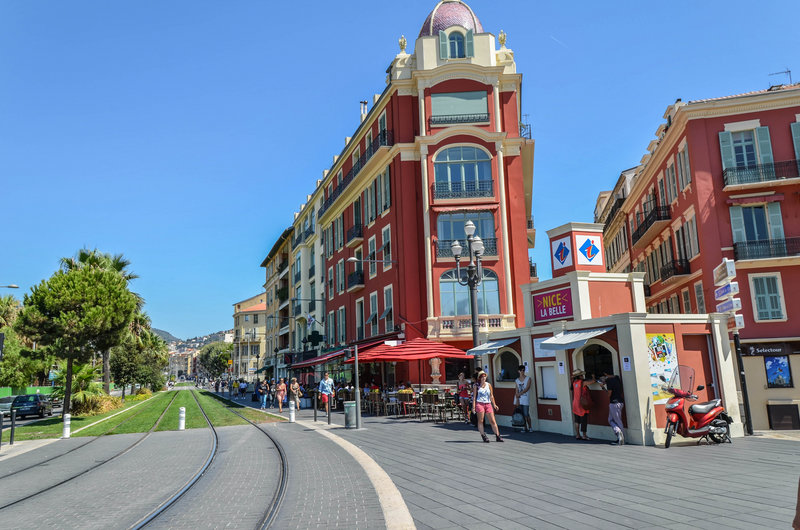 De bien jolies couleurs mais beaucoup de choses cloches : Qu'as tu voulu montrer , les bâtiments ? ils sont tronqués et ils penchent , le tram ? on ne voit que les rails .Ensuite je trouve qu'il y a une grosse partie du ciel vide et le premier plan, n'a pas trop d’intérêts ..