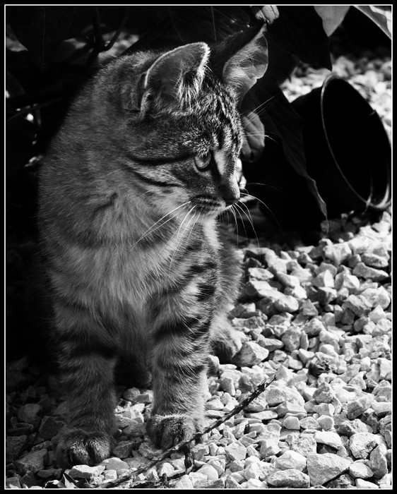 Graviers trop blanc d'ailleurs et qui du coup déforce la présence de ce chat ...