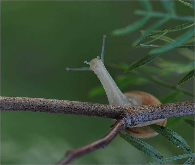Toujours pas spécialiste de macro, mais ça me dérange que mon oeil soit plus attiré par la branche très nette, que par l'escargot.