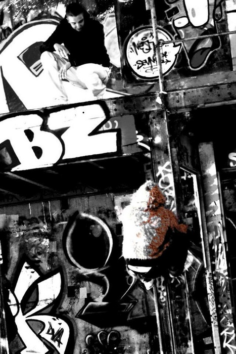 Grâce au titre, j'ai vaguement compris qu'il y a un 2e mec plus ou moins accroché à un poteau ? Mais la bouillie visuelle du traitement m'a vite fait lâcher l'affaire.