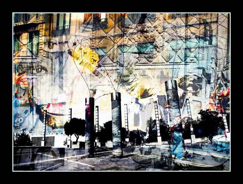 C'est une piste que j'explore depuis quelques mois, les montages, tels des patchworks. Raconter des histoires avec des morceaux de voyages, des souvenirs visuels. Ici, il s'agit principalement de clichés pris à Barcelone. Chaque élément est bien une photo originale. Une bonne prise de tête qui me ravit