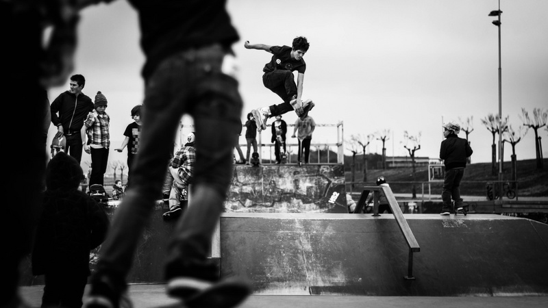 Merci pour vos commentaires . Je trouve aussi que il y a un peu trop de vide à droite .j'aime bien le gamin qui regarde le skater et je voulais garder le 16/9 aussi ! J'ai tenté un autre crop !