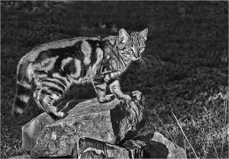 Bien vu, le chat perché qui domine son territoire. L'animal a le poil bien brillant : coup de flash ou lumière naturelle (ou un mixe des deux) ?