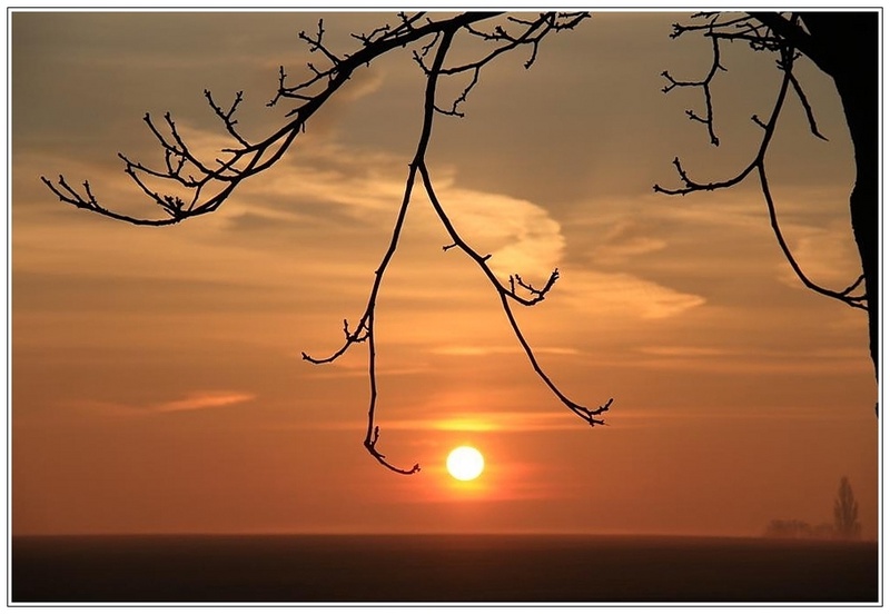 Quel dommage.. il fallait te décaler un peu sur ta gauche pour que l'arrondie de la branche vienne épouser la forme du soleil comme si elle le soutenait.... à mon avis... mais c'est une autre photo...