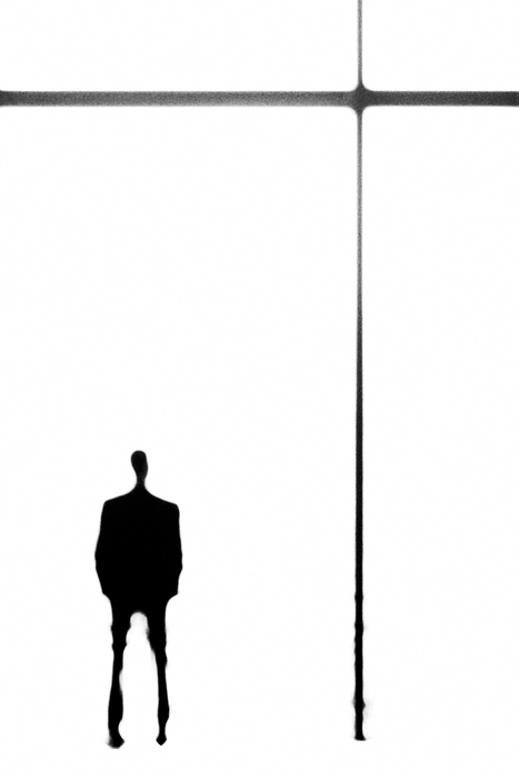 Peut-être un peu trop d'espace entre le personnage et l'horizontale, même si la silhouette de la tête invite a aller vers le haut, vers l'intersection, ce qui est très judicieux.