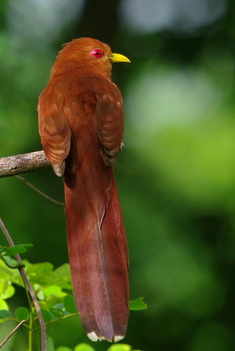 c'est un Petit Piaye (de la famille des Cuculidés): Les principaux caractères distinctifs de cette famille cosmopolite sont des doigts opposés deux à deux, des pattes courtes, une longue queue et un bec à la mandibule supérieure arquée. Ce sont pour la plupart des oiseaux forestiers et arboricoles. Principalement insectivores, ils se nourrissent de chenilles, parfois même de chenilles toxiques délaissées par les autres oiseaux, mais aussi de fruits, insectes ou petits vertébrés. Cette famille présente des différences de comportements sociaux (espèces solitaires ou grégaires) ou reproducteurs (parasitisme, reproduction communautaire) que l'on ne rencontre guère chez d'autres oiseaux.
