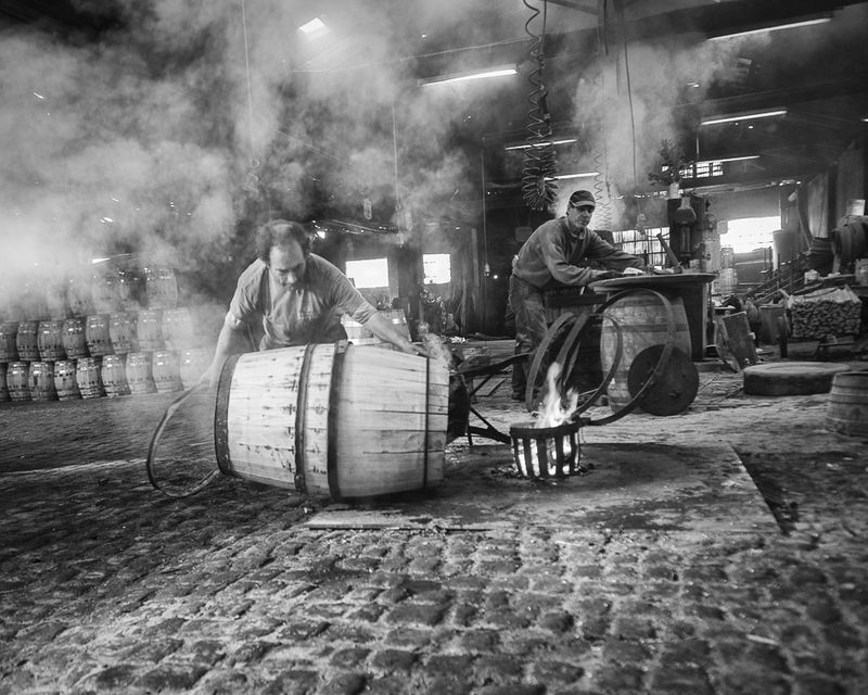 du beau nb. tout dans les nuances de gris, à l'ancienne, tout comme ce tonnelier dans son atelier.