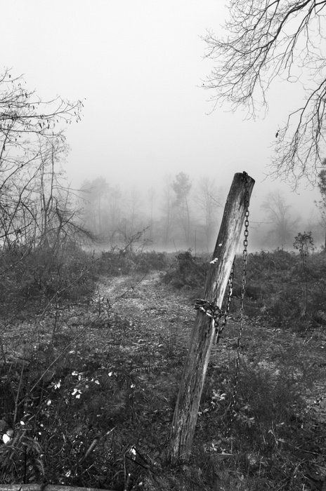 Compte tenu de son orientation, j'aurais bien vu le poteau à gauche de la compo, sans qu'il coupe le sentier que l'on devine dans les herbes et dont il semble à lui tout seul le pauvre vouloir interdire l'accès...