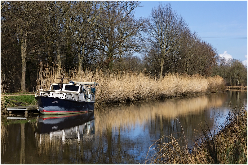 j'aime le reflet des roseaux et du bateau