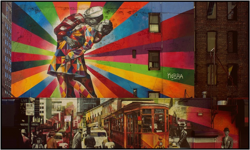 je regrette la coupe du bas qui nous prive d'un morceau de cette superbe fresque urbaine... en ouvrant jusqu'au sol si possible et incluant un ou plusieurs vrai personnages aussi ce serait trop Top!