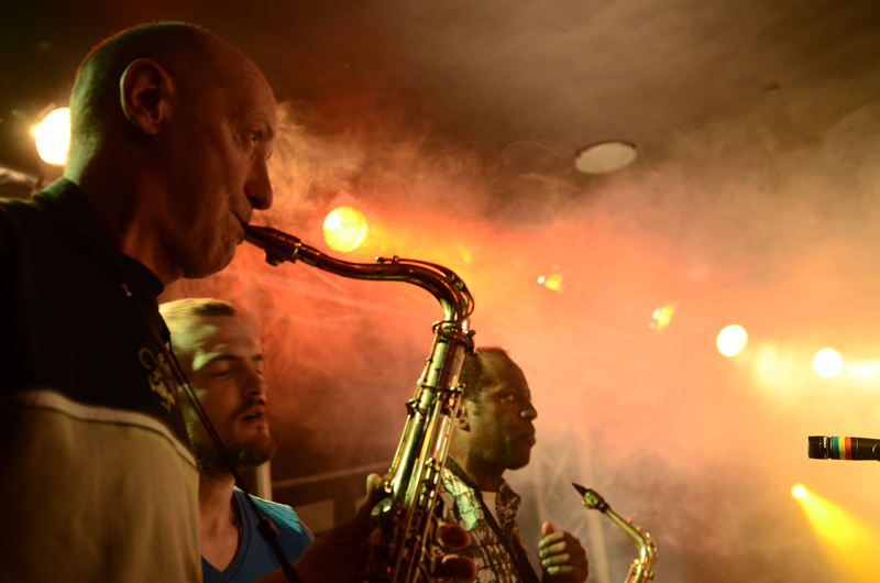 Les deux autres personnages n'apportent rien à l'image, étant donné qu'il ne jouent pas et flou de bougé. Enfin j'aurai viré le bout de micro "rasta" à droite qui accroche l'oeil immédiatement.