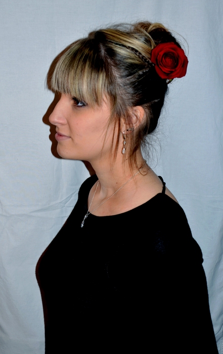 Avec une rose dans les cheveux.