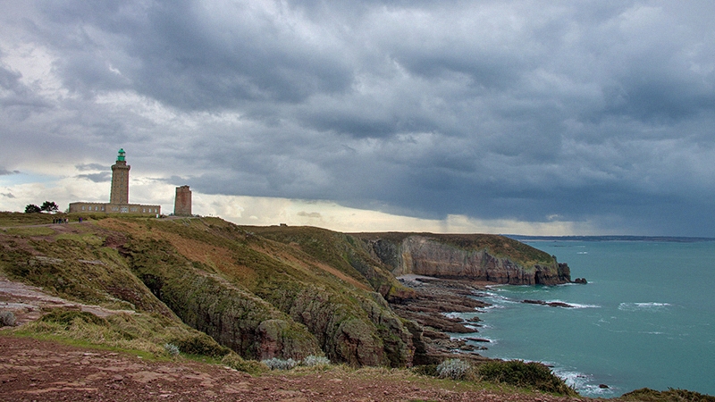 belle texture dans le ciel et le rendu est juste. A mon goût on pourrait redresser la scène, tamponner les touriste et peut être raboter le cadre bas pour se focaliser sur la cote et le phare.