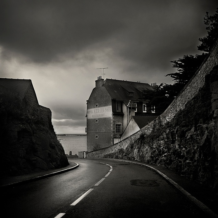 une magnifique perspective qui nous invite à rejoindre la mer sous un ciel plombé, j'aime bien cette ambiance