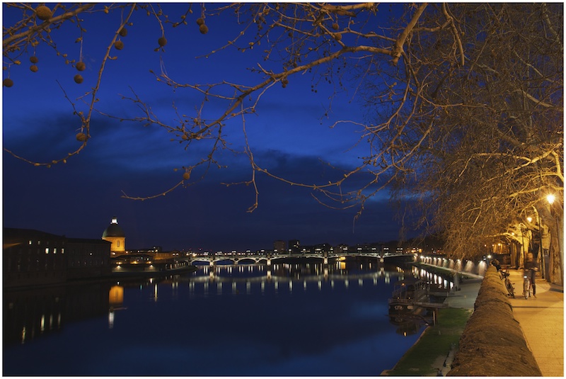a mon goût, le regard est accroche par le spot de droite ce qui ne me semble pas voulu avec le pont au loin. peut être faudrait il redresser l'image et tamponner les branches pour avoir une autre lecture.
