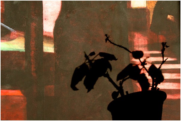 j'aime bien cette ombre chinoise et ces couleurs rose/cramoisi... mais le fond me gêne, y'a un effet bizarre que je ne serai expliquer...
