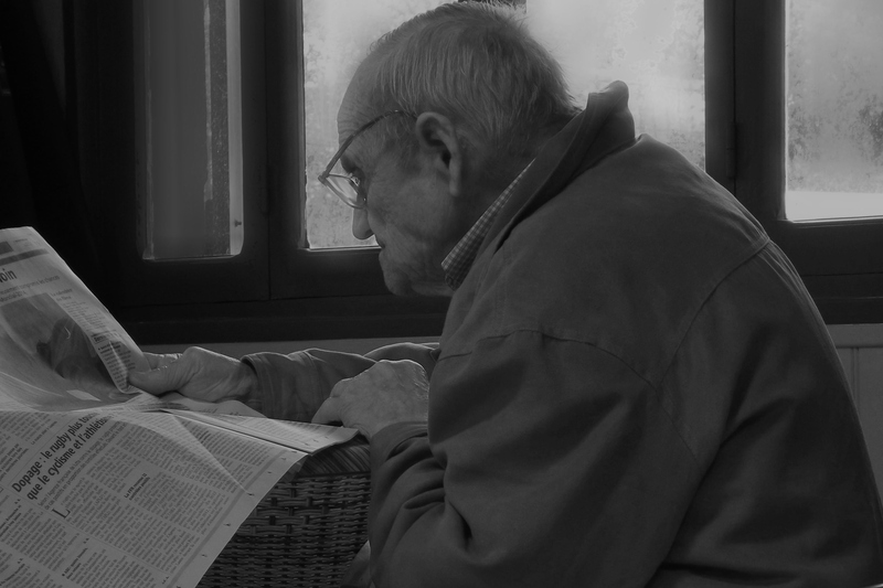 Bien vu mais le cadrage n'est pas terrible : trop serré en haut et j'aurais coupé le dos du lecteur plutôt que son journal...