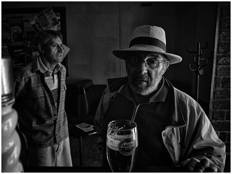 Les sujets sont bien mais je trouve la photo un peu sombre. Je trouve dommage de voir l'objet sur la gauche au premier plan qui a mon avis n'apporte pas grand chose. Il aurait peut etre ete interessant de mettre en avant seulement l'homme sur la droite en creant un leger bokeh? Un travail sur le contraste pourrait ameliorer aussi la photo a mon sens.