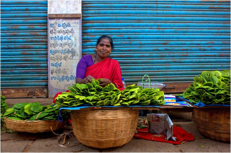 Vendeuse de feuilles de bétel, une feuille que les indiens aiment mastiquer pour sa vertu stimulante, antiseptique et rafraîchissante pour l'haleine.