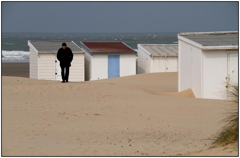 très jolie scène douce et bien composée avec les rappels de couleurs des cabanes dans la grisaille ambiante