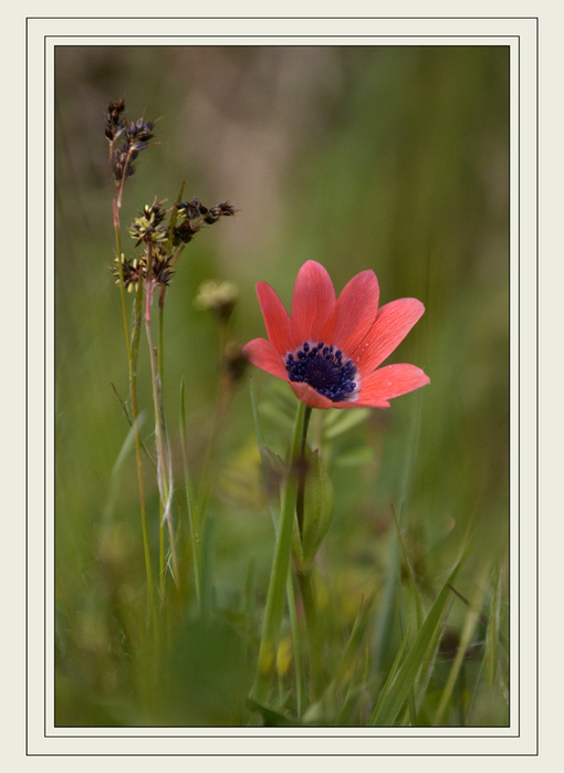 joli tout plein cette anémone beau rouge dans la verdure